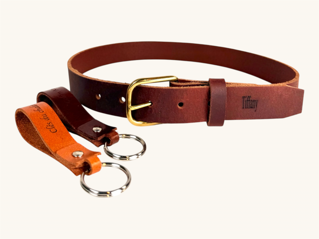 Pour un anniversaire, un mariage, la fête des pères ou un simple « merci », nos ceintures et porte-clés personnalisés deviennent des souvenirs précieux.